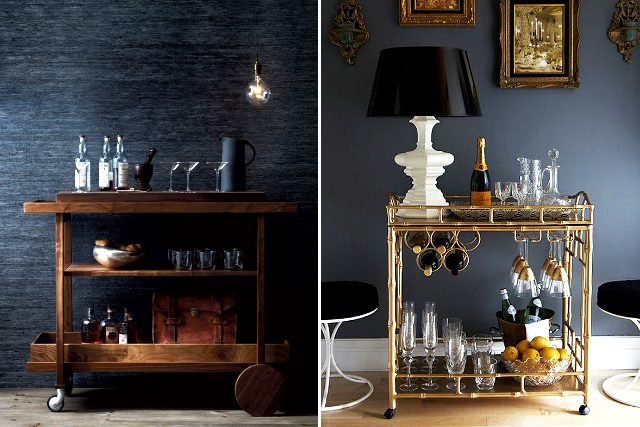 In decoration there are some things that, a few years ago, were considered old-fashioned and nowadays are recovering their glory. One of them are sun mirrors, so seventies, which may be at your grandpa's. The other one, barcarts. These ones used to be considered outmoded but now, as it seems from what I saw at Honestly WTF blog last month, are a very chic decoration element. Don't you wanna have one at home?